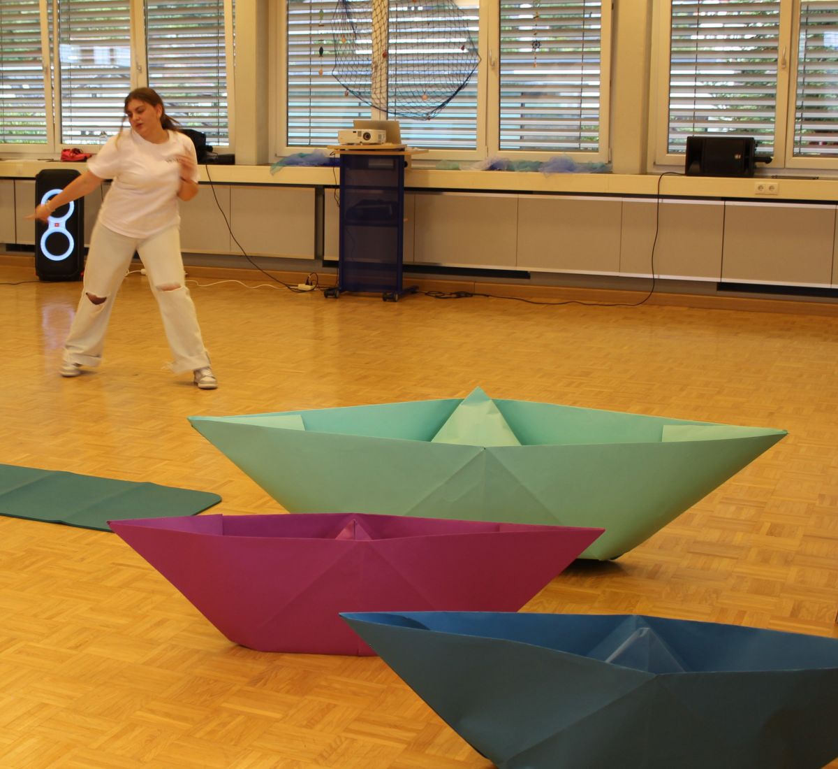 So gaben die 3. Klässler zwei Lieder zum Besten, „99 Segel ziehn“, „Count on me“, die 4. Klässler trugen ein Gedicht vor „Unser Segelboot fährt jetzt los“ und die Tanzgruppe performte im Takt von Sea Shanty „The Wellerman“.